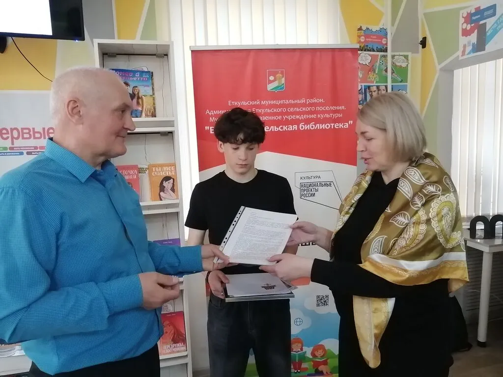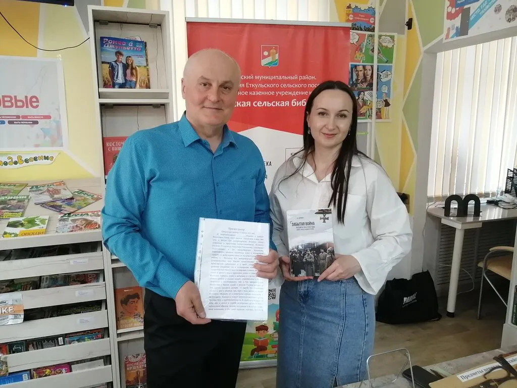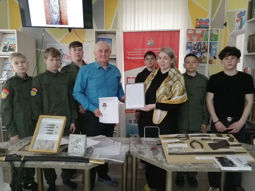 В завершение встречи Сергей Герман подарил школьникам уникальные материалы: полный текст присяги казаков Еткульской станицы и именной список Завершинского награждённых казаков, в том числе и полных кавалеров Георгиевского креста. А Библиополис получил в дар книгу Андрея Борисюка «Забытая война» о событиях Первой мировой войны.